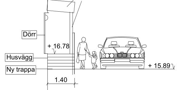 -Inmätning (positionering) koordinater finns tillgängligt i firman, om underlag saknas. Hushörn, träd, buskar, trappor mm.