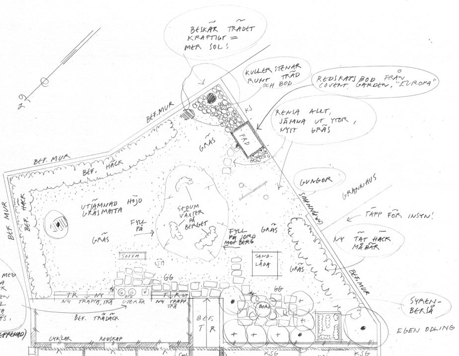 -Spaljéer, pergolor, plank, staket och andra mindre byggda inslag i trädgård gestaltas/uppritas på begäran.